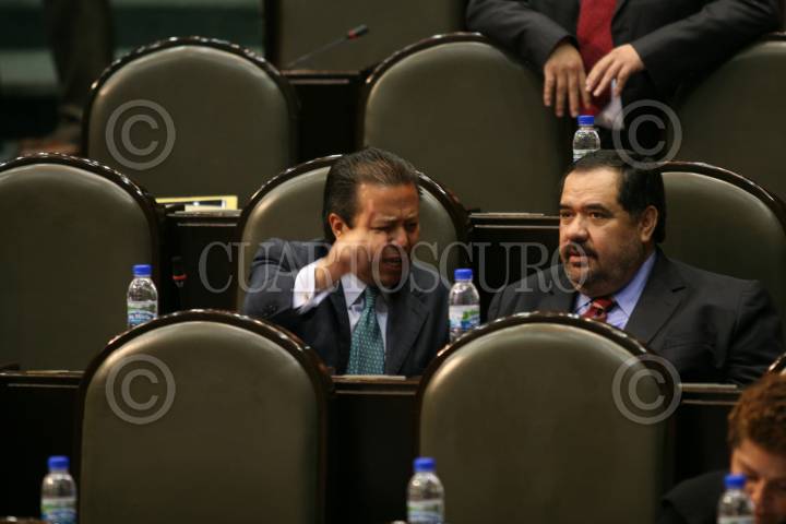 MÉXICO D.F. 21FEBRERO.-2008.-Se realizó la primera lectura a la Reforma Judicial en la sesión ordinaria de Cámara de Diputados.En la imagen diputados de Nueva Izquierda muestran una manta con la leyenda "Diputados de la Nueva Izquierda Estamos en Contra de la Reforma Judicial". FOTO:GUILLERMO PEREA/CUARTOSCURO.COM