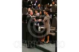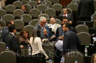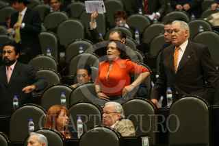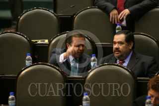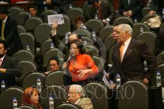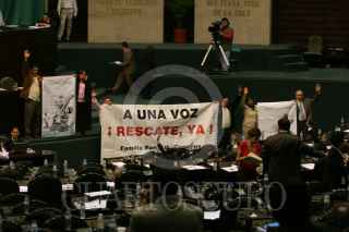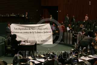 MÉXICO D.F. 21FEBRERO.-2008.-Se realizó la primera lectura a la Reforma Judicial en la sesión ordinaria de Cámara de Diputados.En la imagen diputados de Nueva Izquierda muestran una manta con la leyenda "Diputados de la Nueva Izquierda Estamos en Contra de la Reforma Judicial". FOTO:GUILLERMO PEREA/CUARTOSCURO.COM