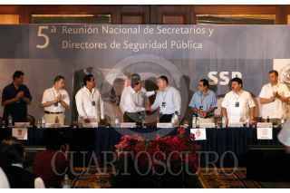 ACAPULCO, GUERRERO, 22FEBRERO2008.- El Secretario de Seguridad Publica Federal Genaro Garcia Luna acompañado del gobernador de Guerrero Zeferino Torre Blanca y el edil de Acapulco Felix Salgado Macedonio inaugurarón la quinta reunión nacional de secretarios y directores de seguridad pública. FOTO: SAUL LOPEZ/CUARTOSCURO.COM