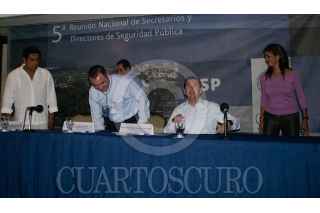ACAPULCO, GUERRERO, 22FEBRERO2008.- El Secretario de Seguridad Publica Federal Genaro Garcia Luna acompañado del gobernador de Guerrero Zeferino Torre Blanca y el edil de Acapulco Felix Salgado Macedonio concluyeron la quinta reunión nacional de secretarios y directores de seguridad pública. FOTO: SAUL LOPEZ/CUARTOSCURO.COM