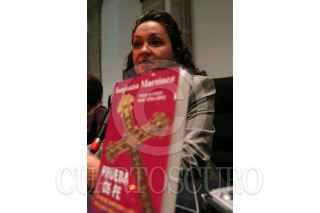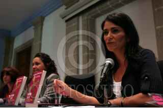 MEXICO, D.F., 23FEBRERO2008.- La escritora Sanjuana Martínez, durante la presentación de su libro Prueba de la Fe, que aborda los casos de pederastía dentro de la iglesia católica, en el marco de las actividades de la Feria Internacional del Libro en el Palacio de Minería. FOTO: MOISÉS PABLO/CUARTOSCURO.COM