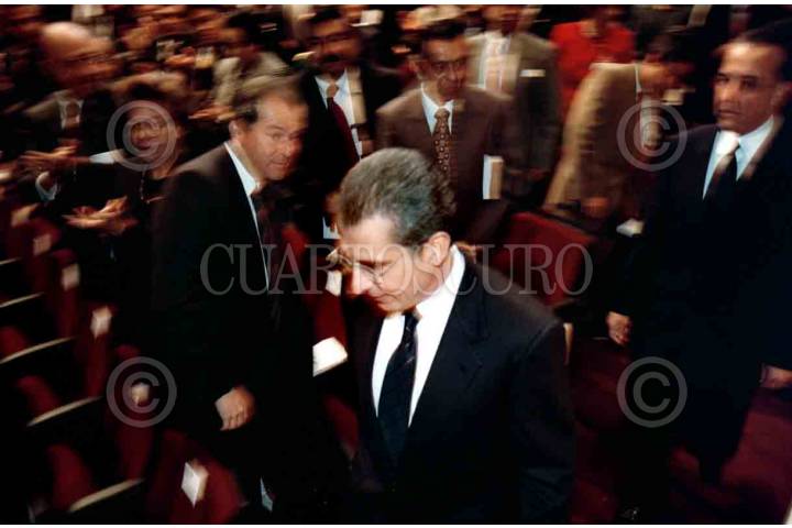 Miguel Aleman y miembros del gabinete de Zedillo durante la ceremonia por el 83 aniversario de la Constitución mexicana.