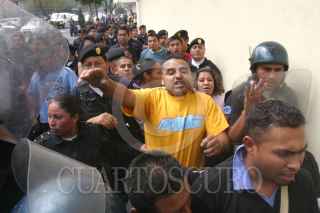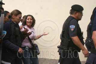 MEXICO, D.F., 27FEBRERO2008.- Policías granaderos de la ssp realizaron un operativo en la estación del metro revolución para detener a los vendedores ambulantes llamados bagoneros, pero fueron denunciados por una mujer de golpear a menores de edad y mostró radiografías de las lesiones de su nieta de dos años golpeada un día antes en otro operativo por lo que presentó una denuncia. FOTO: PEDRO MARRUFO/CUARTOSCURO.COM