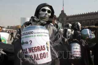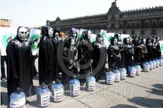 MÉXICO, D.F., 26FEBRERO2008.- Itegrantes del partido verde ecologísta protestaron en el zócalo capitalino por la contaminación del agua en Hidalgo. FOTO: PEDRO MARRUFO/CUARTOSCURO.COM