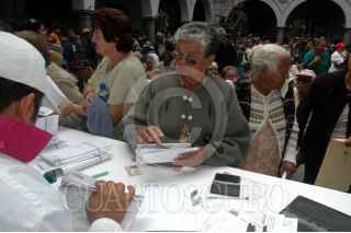 VERACRUZ, VER. 27FEBRERO2008.- Desde temprana hora personas de la tercera edad acudieron al patio central del ayuntamiento porteño donde fueron entregados recursos del programa "70 y +" de la secretaria de desarrollo social.FOTO: JOSE CANDELARIO/CUARTOSCURO.COM