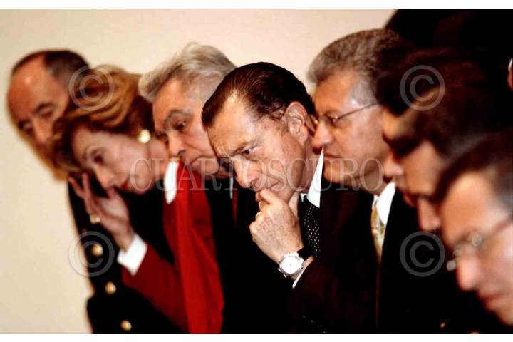 Miguel Aleman y miembros del gabinete de Zedillo durante la ceremonia por el 83 aniversario de la Constitución mexicana.