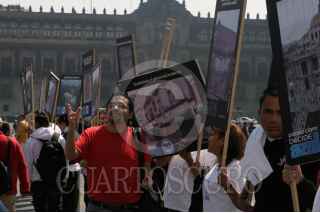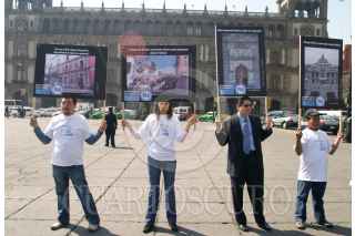 MÉXICO, D.F., 28FEBRERO2008.- Integrantes del PAN D.F. encabezados por su titular Mariana Gomez del Campo se manifestaron en el zocalo, portando una exposición denominda "Expo Destrucción" donde muestran fotos de edificios antiguos que el gobierno capitalino pretende demoler. FOTO: SAÚL LÓPEZ/CUARTOSCURO.COM