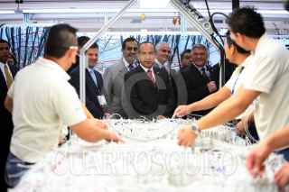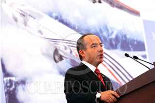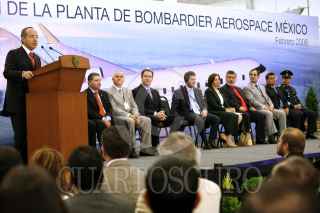 SANTIAGO DE QUERETARO, QUERETARO., 28FEBRERO2008.- El presidente Felipe Calderón durante la inauguración de la planta "Bombardier Aerospace México" que tuvo lugar en este municiipio. FOTO: ALFREDO GUERRERO/CUARTOSCURO.COM