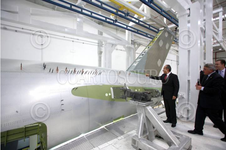 SANTIAGO DE QUERETARO, QUERETARO., 28FEBRERO2008.- El presidente Felipe Calderón durante la inauguración de la planta "Bombardier Aerospace México" que tuvo lugar en este municiipio. FOTO: ALFREDO GUERRERO/CUARTOSCURO.COM