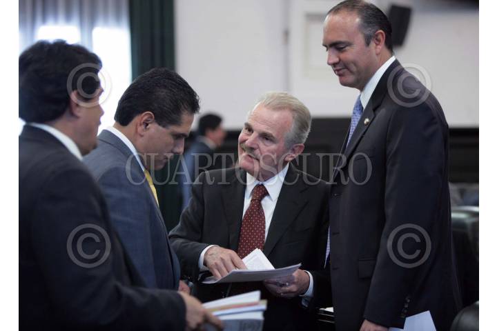 MÉXICO, D.F. 28FEBRERO2008.- Los Senadores Ricardo García Cervantez, Alejandro Gonzales Alcocer, Pablo Gómez y Alejandro Zapata, conversan durante la sesión en el Senado de la República. FOTO: CUARTOSCURO.COM