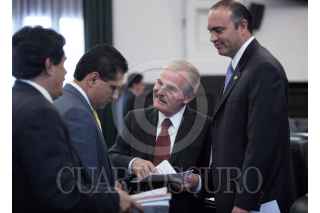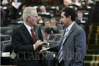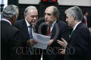 MÉXICO, D.F. 28FEBRERO2008.- Los Senadores Ricardo García Cervantez, Alejandro Gonzales Alcocer, Pablo Gómez y Alejandro Zapata, conversan durante la sesión en el Senado de la República. FOTO: CUARTOSCURO.COM