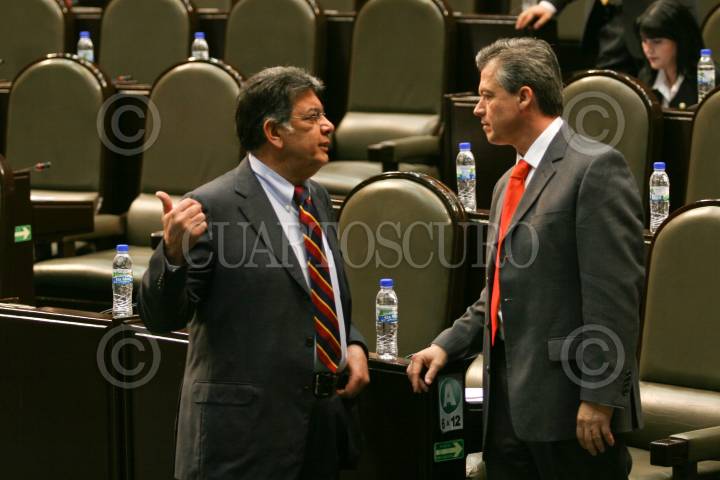 MÉXICO D.F. 28FEBRERO2008.-El diputado Chiristian Castaño (PAN), después de mencionar que se cancelaba la sesión en la Cámara de diputados dialoga con Gerado Buganza. FOTO: GUILLERMO PEREA/CUARTOSCURO.COM