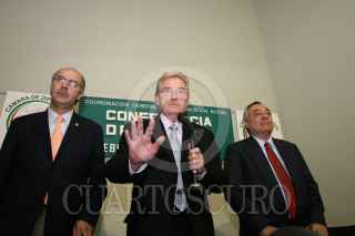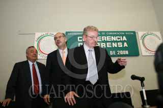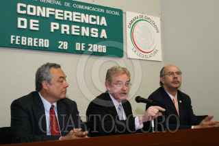 MÉXICO D.F. 28FEBRERO2008.-Los diputados coordinadores, Ricardo Catú (PT), Javier Gónzalez Garza (PRD) y Alejandro Chanona (Convergencia) durante la conferencia de prensa ofrecida en las instalaciones de la Cámara de Diputados donde se hablo de los documentos que supuestamente demuestran el enrrequecimiento de la familia del seceretario de gobernación. FOTO: GUILLERMO PEREA/CUARTOSCURO.COM