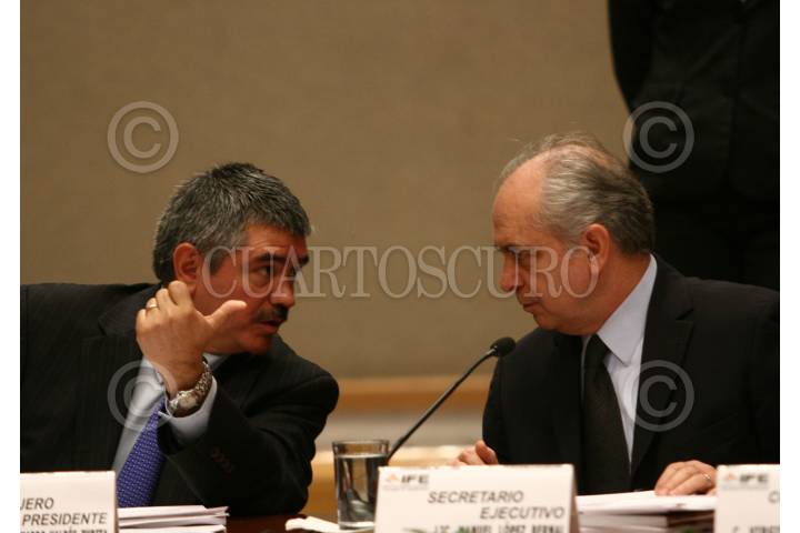 MÉXICO,D.,F29 FEBRERO2008.- Los consejeros Marco Antonio Baños acompañado por Maria del Refugio Lopez durante la sesión en el IFE. FOTO: SASHENKA GUTIERREZ/CUARTOSCURO.COM