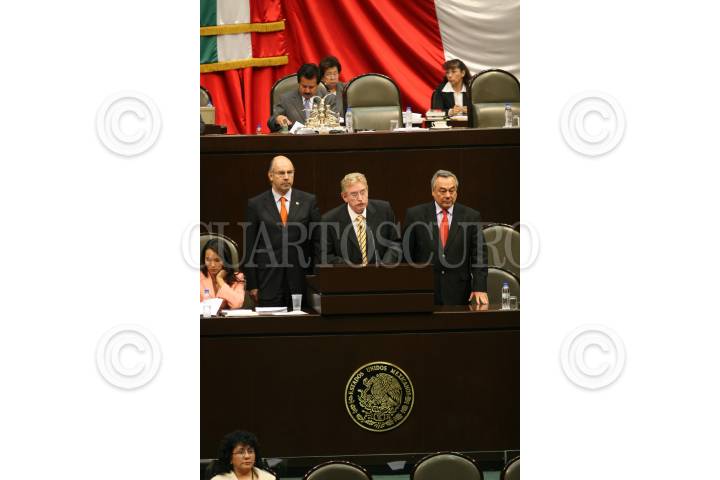 MÉXICO D.F. 04MARZO2008.-Sesión ordinaria en la Cámara de Diputados donde fue solicitada una comisión especial para investigar los contratos de PEMEX y CFE a terceros.En la imagen los diputados Claudia Cruz y Alberto Esteva de (Convergencia) muestran una manta con la leyenda ¿Las Manos Limpias? FOTO: GUILLERMO PEREA /CUARTOSCURO.COM