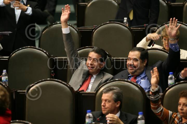 MÉXICO D.F. 04MARZO2008.-Sesión ordinaria en la Cámara de Diputados donde fue solicitada una comisión especial para investigar los contratos de PEMEX y CFE a terceros.En la imagen los diputados coordinadores, Emilio Gamboa Patrón (PRI) y Hector Larios (PAN) dialogan durante la sesión. FOTO: GUILLERMO PEREA/CUARTOSCURO.COM