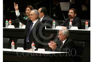 MÉXICO D.F., 04MARZO2008.- Joaquin Gamboa Pascoe saluda a los asistentes durante la celebración del 79 aniversario del PRI, que se realizo en el Auditorio Nacional FOTO: SASHENKA GUTIERREZ/CUARTOSCURO.COM