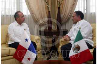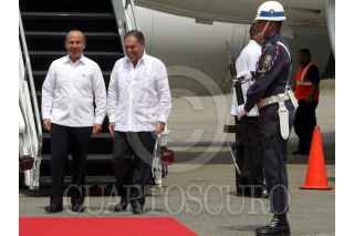 PANAMÁ, PANAMÁ 05MARZO2008.- El presidente de la república, Felipe Calderon Hinojosa a su llegada a la ciudad de Panama, acompañado por Samuel Lewis, primer Vicepresidente y Ministro de Relaciones Exteriores de Panamá. FOTO:ALFREDO GUERRERO/CUARTOSCURO.COM