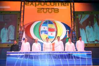 PANAMA, PANAMA 5MARZO2008.- El presidente de México Felipe Calderón y el presidente de Panama Martin Torrijos durante la inauguración del pabellón mexicano en la Expocomer 2008. FOTO:ALFREDO GUERRERO/CUARTOSCURO.COM
