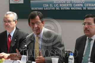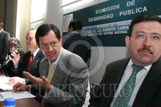 MÉXICO D.F. 06MARZO2008.-Roberto Campa, Secretario Ejecutivo del Sistema de Seguridad Nacional, acudio a la Cámara de Diputados a la reunión de rabajo con la Comisión de Seguridad Pública de esta cámara.En la imagen es acompañado por el diputado Sergio Fenández Montaño y el oficial mayor de la SSP, Juan Francisco Rivera. FOTO: GUILLERMO PEREA/CUARTOSCURO.COM