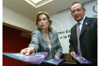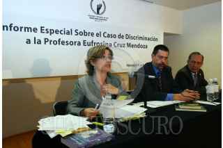 MEXICO, D.F., 06MARZO2008.- Susana Talia Pedroza, Segunda Visitadora del CNDH y encargada del Programa de Igualdad entre Hombres y Mujeres y Pedro Camacho Marín, director de Comunicación CNDH, durante el informe especial sobre el caso de Discriminación a la Profesora Eufrosina Cruz Mendoza. FOTO: MOISÉS PABLO/CUARTOSCURO.COM