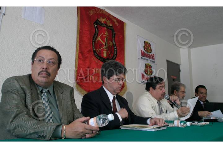 MEXICO, D.F. 11MARZO2008.- Carlos Pavón, Nestor de Buen y Juan Luis Zuñiga Velazquez, integrantes del Sindicato Nacional de Trabajadores Mineros ofrecierón una conferencia donde mencionaron que la PGR pretende dilatar más tiempo en la resolución sobre el juicio politicos contra Napoleón Gomez Urrutia FOTO: SÁÚL LÓPEZ/CUARTOSCURO.COM