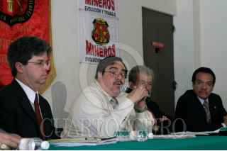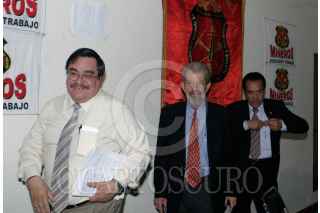 MEXICO, D.F. 11MARZO2008.- Carlos Pavón, Nestor de Buen y Juan Luis Zuñiga Velazquez, integrantes del Sindicato Nacional de Trabajadores Mineros ofrecierón una conferencia donde mencionaron que la PGR pretende dilatar más tiempo en la resolución sobre el juicio politicos contra Napoleón Gomez Urrutia FOTO: SÁÚL LÓPEZ/CUARTOSCURO.COM