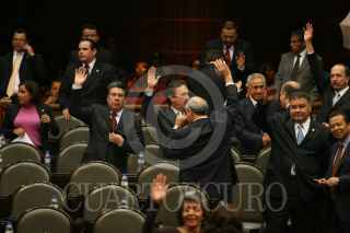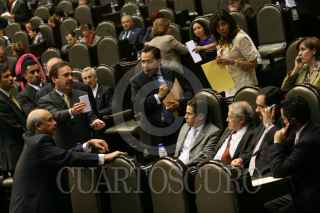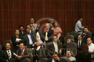 MÉXICO D.F. 12MARZO2008.-Diputados del PRD, festejan al termino de la sesión en la Cámara de Diputados.En la imagen el diputado Javier Gózalez Garza coordinador de esta bancada. FOTO: GUILLERMO PEREA/CUARTOSCURO.COM