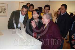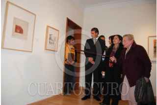 ZACATECAS, ZACATECAS, 13MARZO2008.- Raquel Tibol, crítica de arte, Amalia García, gobernadora de la entidad y Cuauhtemoc Calderón, presidente municipal, durante la inauguración de la colección de dibujo y gráfica de la maestra Tibol en el marco de la XXII edición del Festival Cultural de Zacatecas, ayer por la noche en el museo Francisco Goitia de la capital del estado. FOTO: CARLOS SEGURA/CUARTOSCURO.COM