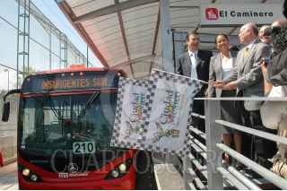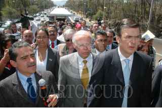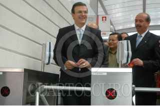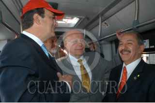 MÉXICO D.F.,13MARZO2008.- Marcelo Ebrard jefe de gobierno del D.F.; José Narro, rector de la UNAM y Armando Quintero, secretario de vialidad ; durante el recorrido por la ampliación de la linea 1 del Metrobus que corre de la estación Dr. Galvez hacia El Caminero. FOTO: RODOLFO ANGULO/CUARTOSCURO.COM