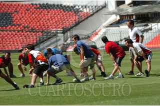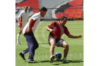 MÉXICO, D.F., 13MARZO2008.- Pilotos que participarán en la formula A1G, este fin de semana sostuvieron una cascarita con comentaristas de deportes en la cancha del Estadio Azteca. En la imagen el ex-futbolista Ricardo Pelaez. FOTO: IVÁN MENDEZ/CUARTOSCURO.COM