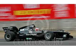 MÉXICO D.F.,14MARZO2008.- El coche del piloto mexicano David Garza durante la segunda serie de practicas de la serie A1GP de automovilismo que se realiza en el Autodromo Hermanos Rodriguez. FOTO: RODOLFO ANGULO/CUARTOSCURO.COM