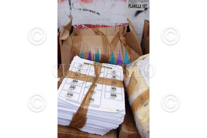 CHILPANCINGO, GUERRERO, 18MARZO2008.- Perredistas provenientes del puerto de Acapulco abandonaron afuera de la sede de la Comision Tecnica Electoral la papeleria utilizada en la pasada jornada electoral del domingo, debido a que no encontraron a los encargados para que la recibieran. FOTO: OSCAR ALVARADO/CUARTOSCURO.COM