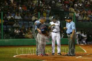 VILLAHERMOSA, TABASCO, 19MARZO2008.- Los managers de los equipos de LMB; Olmecas de Tabasco, Orlando Sánchez Márques y de los Piratas de Campeche, Héctor Estrada en el juego inaugural que se realizó en el estadio Centenario del 27 de Febrero. FOTO: MARCO POLO GUZMÁN HERNÁNDEZ/CUARTOSCURO.COM