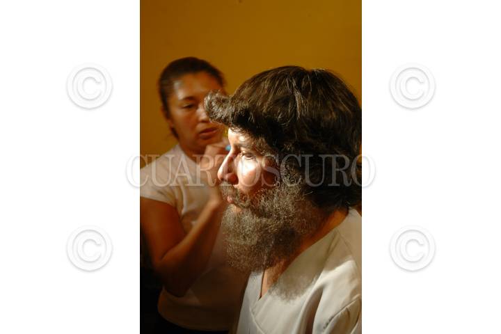 MÉXICO, D.F., 20MARZO2008.-Actores de la Pasión en Iztapalapa se prepararan con los ultimos detalles de vesturio y maquillaje para la representación. FOTO: RODOLFO ANGULO/CUARTOSCURO.COM