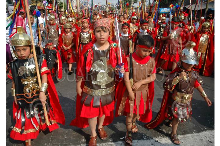 MÉXICO, D.F., 20MARZO2008.- Romanos sobre sus caballos tocan las trompetas durante el recorrido de los 8 barrios en la tradicional representación de La Pasión en la delegación Iztapalapa. FOTO: RODOLFO ANGULO/CUARTOSCURO.COM
