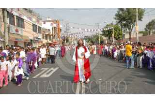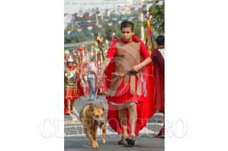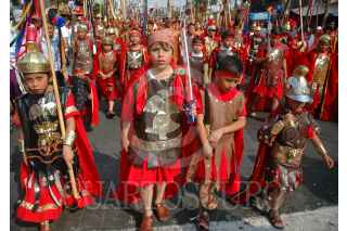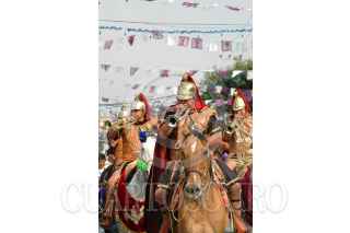 MÉXICO, D.F., 20MARZO2008.- Romanos sobre sus caballos tocan las trompetas durante el recorrido de los 8 barrios en la tradicional representación de La Pasión en la delegación Iztapalapa. FOTO: RODOLFO ANGULO/CUARTOSCURO.COM
