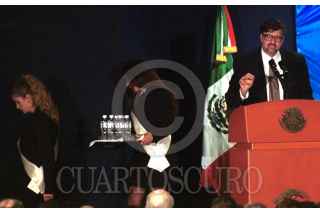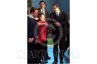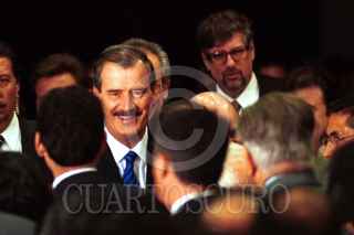 El Presidente Vicente Fox y Jeffrey Davidow, embajador de Estados Unidos en México, salen del primer encuentro internacional sobre la promoción de las pequeñas y medianas empresas de México y Estados Unidos. FOTO: Christian Palma/CUARTOSCURO.COM