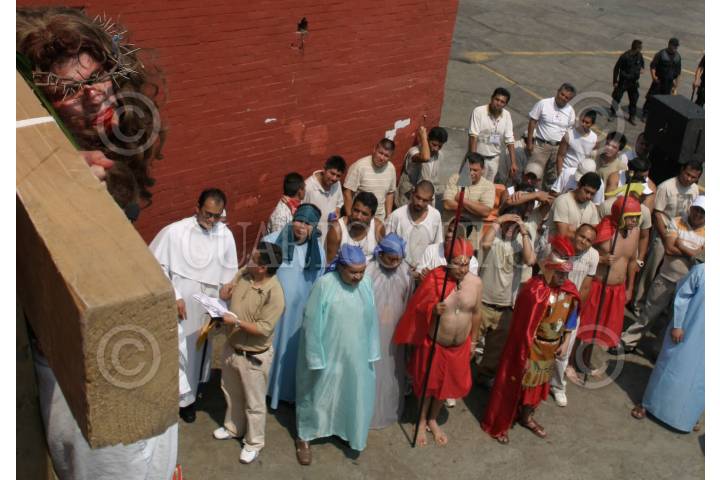 MÉXICO, D.F., 21MARZO2008.- Internos del reclusorio oriente realizaron una representación de la pasión de cristo, como parte de las actividades de la semana santa. FOTO: SAÚL LÓPEZ/CUARTOSCURO.COM.