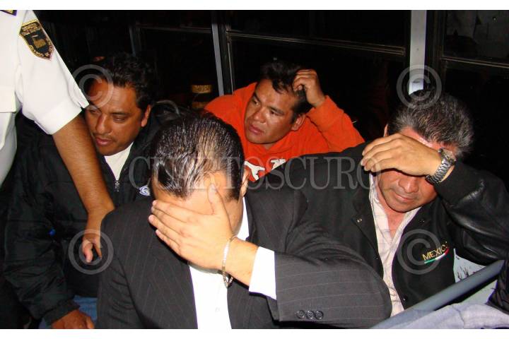 COACALCO, ESTADO DE MEXICO, 27MARZO2008.-Esta madrugada fueron detenidos una banda de delincuentes acusados de robo, secuestro y narcomenudeo, de los cuales tres son policias judiciales en activo y cinco mas son de los nombrados madrinas, la detención se llevó acabo sobre la vía José López Portillo en el municipio de Coacalco donde participaron 200 elementos de la policía estatal. Se les decomisaron 5 armas de fuego, mas de 300 cartuchos utiles, tres vehiculos con reporte de robo, 55 grapas de cocaina y bolsas de marihuana, quedaron a disposición del MP federal. FOTO: LUZ ACEVEDO/CUARTOSCURO.COM