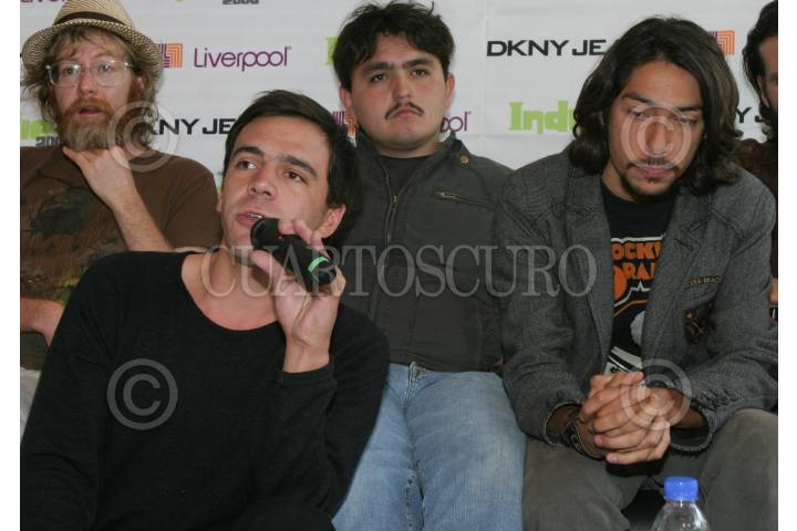 MEXICO, D.F., 27MARZO2008.- Se realizará el próximo sabado el festival de vanguardias musicales Indie-O Fest 2008, que cumple con esta edición cuatro años de presentar lo más destacado de la escena independiente nacional e internacional, entre las bandas estelares se encuentran Broken Social Scene, The National, San Pascualito Rey, Estereox y Chiquita Violenta, en el salón Vive Cuervo. En la imagen los integrantes de San Pascualito Rey durante la conferencia. FOTO: MOISÉS PABLO/CUARTOSCURO.COM