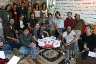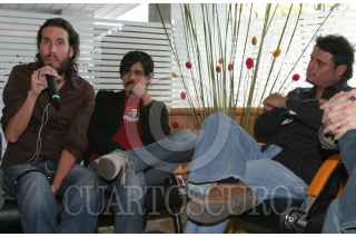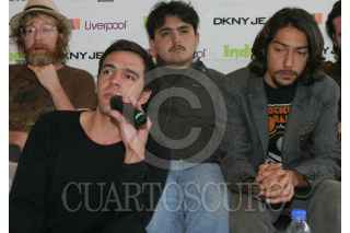 MEXICO, D.F., 27MARZO2008.- Se realizará el próximo sabado el festival de vanguardias musicales Indie-O Fest 2008, que cumple con esta edición cuatro años de presentar lo más destacado de la escena independiente nacional e internacional, entre las bandas estelares se encuentran Broken Social Scene, The National, San Pascualito Rey, Estereox y Chiquita Violenta, en el salón Vive Cuervo. En la imagen los integrantes de San Pascualito Rey durante la conferencia. FOTO: MOISÉS PABLO/CUARTOSCURO.COM
