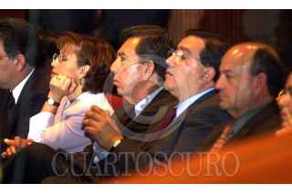 Rosario Robles, Cauauhtémoc Cárdenas y Pablo Salazár Mendiguchia durante la visita de la comandancia del EZLN a San Lázaro. FOTO: Pedro Mera/CUARTOSCURO.COM