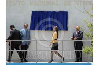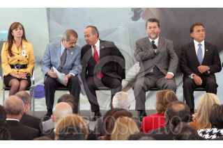 México D.F., a 28 de Marzo de 2008.- El jefe del ejecutivo, Felipe Calderon Hinojosa, encabezo la ceremonia de la campaña de vacunación para eliminar la Rubeola y prevenir la poliomielitis, que se realizo en el Instituto Nacional de Virología. Lo acompaño el titular de salud José Angel Cordova. FOTO: VICTORIA VALTIERRA/CUARTOSCURO.COM
