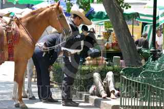 MEXICO D.F. 28MARZO2008.- Dos elementos de la policia montada de la Alameda Central acudieron para pedir a un jovén en condición de calle para que se retirara del lugar pero al percatarse de que se encontraba enfermo pidieron una ambulancia, pero pasaron varios minutos y no habia llegado. FOTO: PEDRO MARRUFO/CUARTOSCURO.COM