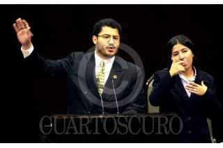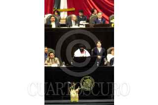 Marti Batres, lider de los perredistas, durante la sesión en San Lázaro donde el EZLN acudió a tomar la voz en la tribuna. FOTO: Pedro Mera/CUARTOSCURO.COM