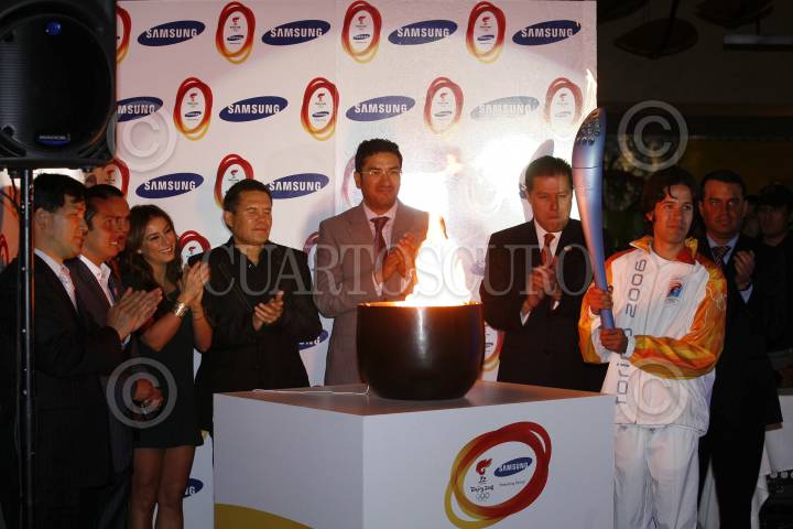 MÉXICO D.F., 28MARZO2008.- Ricardo Finito Lopéz y Julio Cesar Chavez posan a los fotógrafos en un hotel de la Ciudad de México durante el evento del encendido de la antorcha olímpica. FOTO: ALBERTO VERA/CUARTOSCURO.COM