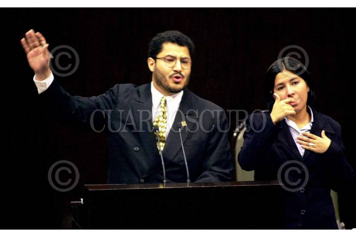 Marti Batres, lider de los perredistas, durante la sesión en San Lázaro donde el EZLN acudió a tomar la voz en la tribuna. FOTO: Pedro Mera/CUARTOSCURO.COM