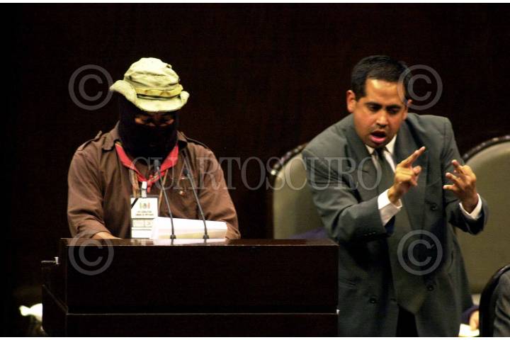La comandanta Esther, aclaró en la tribuna de San Lázaro que Marcos solo es Sub Comandante y que los comandantes son los 23 que acudieron al recinto. FOTO: Pedro Mera/CUARTOSCURO.COM