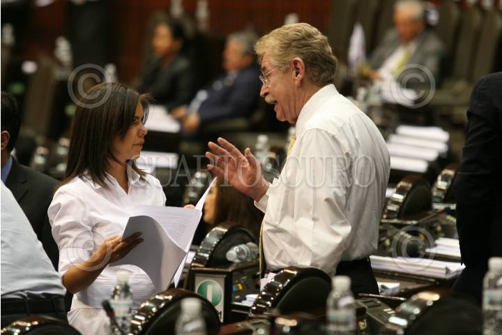MÉXICO D.F. 03ABRIL2008.-Sesión ordinaria en la Cámara de diputados.En la imagen los diputados Ruth Zavaleta (PRD) y Cristian Castaño (PAN) observan el tablero de votación. FOTO: GUILLERMO PEREA/CUARTOSCURO.COM